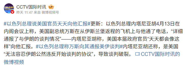 美国副总统万斯在伊斯兰堡返程的飞机上,专门给我打电话,详细通报了美伊谈判破裂的全部过程。