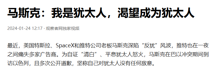 但是这还不够,以色列认为马斯克的认错态度还不够诚恳。